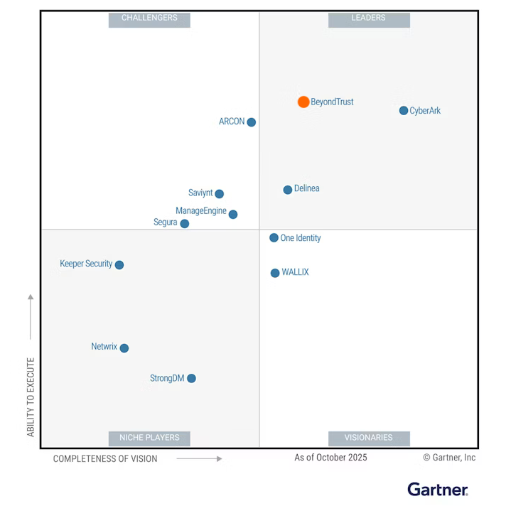 2025 оны Gartner Magic Quadrant-т Privileged Access Management шийдлээр BeyondTrust компани 7 дахь жилдээ дарааллан тэргүүлэгчээр тодорч байна. Тус тайланд BeyondTrust-ийн хандах эрхийн удирдлага /PAM/ нь гүйцэтгэх чадвар (Ability to Execute) үзүүлэлтээр өрсөлдөгчдөөсөө хамгийн өндөр үнэлгээг авлаа.