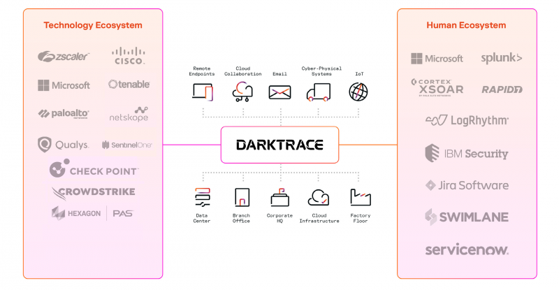 Darktrace нь таны ашиглаж буй экосистемтэй интеграци хийж аюулыг илрүүлэх, мөрдөн шалгах, хариу арга хэмжээ авах, үйл ажиллагааны ажлын урсгалыг хөнгөвчилнө.
