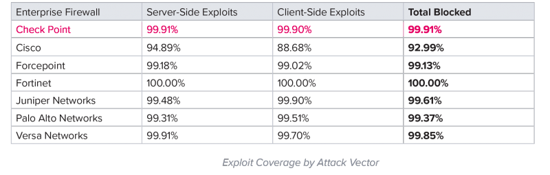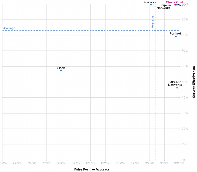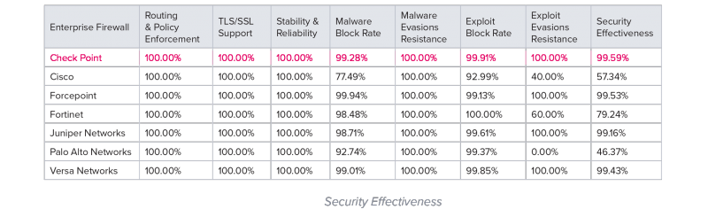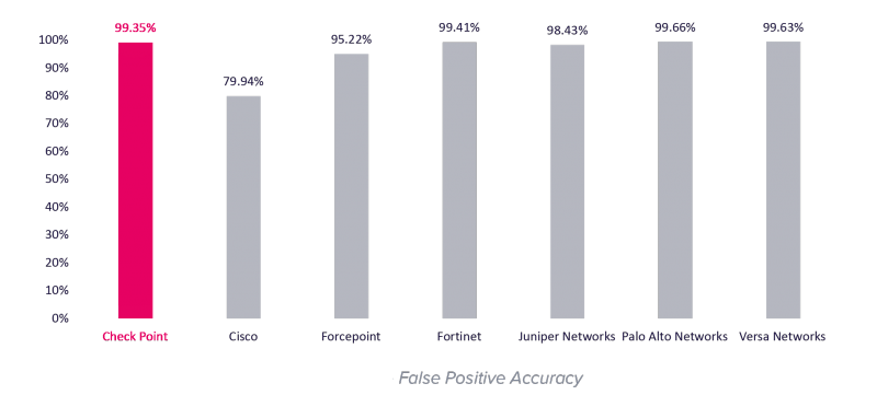 NSS Labs-ийн туршилтаар Check Point нь 99.59%-ийн ерөнхий оноо авч, гол өрсөлдөгчдөөсөө хол тасархай түрүүллээ. Check Point "RECOMMENDED" (Санал болгож буй) үнэлгээг авсан бол бусад томоохон вендорууд "CAUTION" (Анхаарууштай) үнэлгээ авсан нь зах зээлд аль шийдэл хамгийн найдвартай болохыг тодорхой харуулж байна. Энэ нь Check Point-ийн шийдэл халдлагыг бизнесийн үйл ажиллагаанд нөлөөлөхөөс нь өмнө зогсоож чадаж байгааг илтгэнэ.