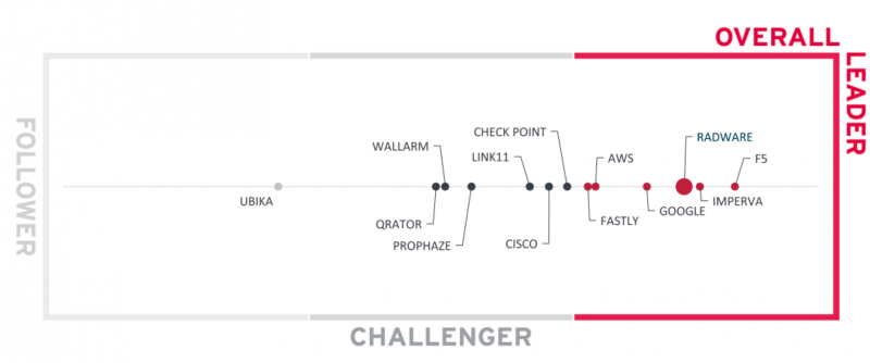 Radware нь энэхүү тайланд үнэлэгдсэн бусад томоохон компаниуд болох AWS, F5, Fastly, Google, Imperva зэрэгтэй мөр зэрэгцэн өрсөлдөж, дараах үндсэн үзүүлэлтүүдээр онцгойрч чадлаа: