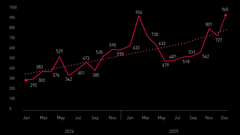 Ransomware бүлэглэлүүд жижиг, төвлөрсөн бус (decentralized) бүтэц рүү шилжиж, AI автоматжуулалтыг ашиглан илүү хурдан, олон тооны дайралт хийх болжээ. Энэ нь хамгаалалтын багуудад ирэх дарамтыг нэмэгдүүлж байна.